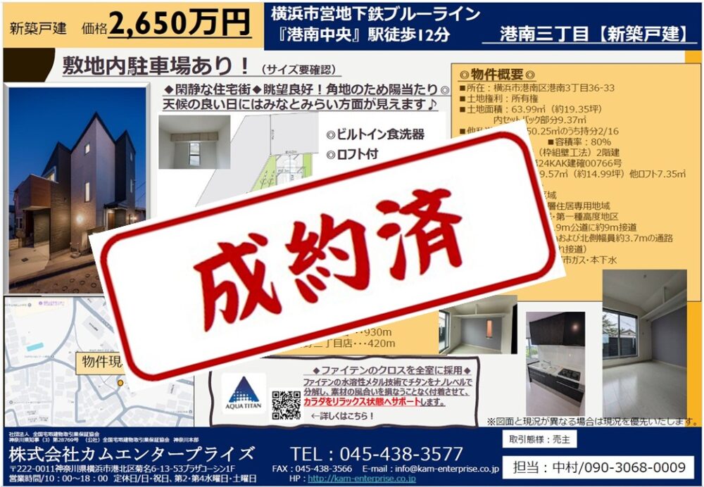 🌸おかげさまでご成約いただきました🌸★☆港南三丁目 新築戸建★☆ 2025年7月24日 最終更新日時 : 2025年7月24日 株式会社カムエンタープライズ ☆所在地☆横浜市港南区港南3丁目 ☆交通☆ブルーライン線「港南中央駅」徒歩12分 ☆価格☆2650万