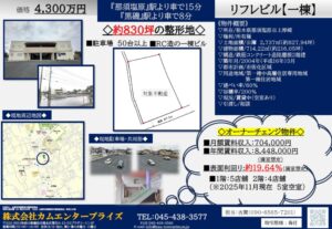 🌸ありがとうございます! おかげ様で成約となりました🌸 弊社仲介物件、価格が変更となりましたのでご案内いたします。 小田原市曽比にございます共同住宅です。 こちらはオーナーチェンジ物件となります。 価格:3 […]